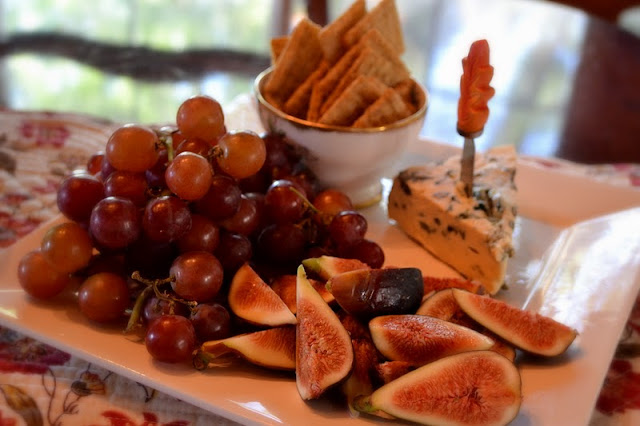 I wanted to share a few very simple and inexpensive ways that Kathy styles her food and entertains others. She re-uses old, fancy vinegar bottles from the Grocery Outlet, fills them with water and a long sprig of Rosemary and always has one on hand, chilled for guests. The rosemary lightly sweetens the water and doesn't compete with other flavors on the table.
